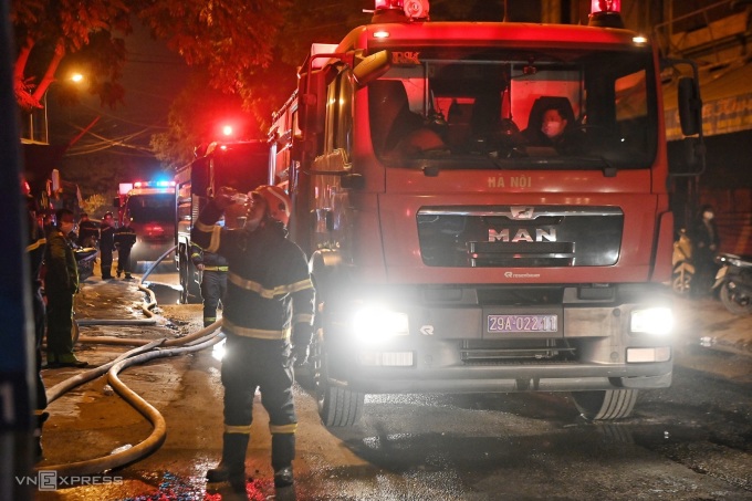 Lực lượng chức năng đang tích cực dập lửa. Ảnh: Giang Huy