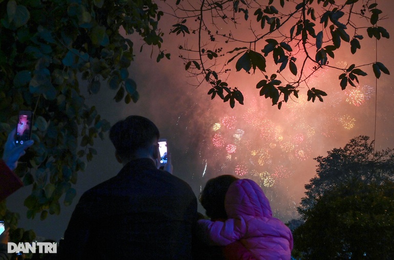 Hình ảnh người dân xem pháo hoa tại Công viên Thống Nhất dịp Tết Nguyên đán 2021 (Ảnh: Tiến Tuấn).