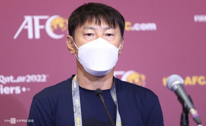HLV Shin Tae-yong hài lòng với một điểm trước Việt Nam ở lượt ba bảng B AFF Cup 2020 tại Singapore. Ảnh: Lâm Thoả