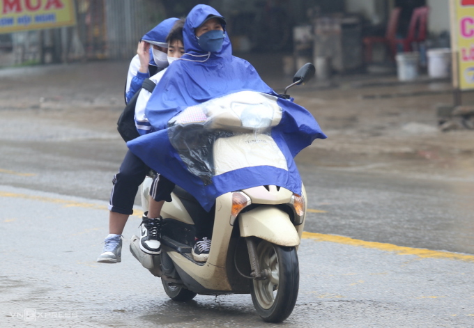 Học sinh Hà Nội đi học dưới mưa sáng 12/2. Ảnh: Gia Chính