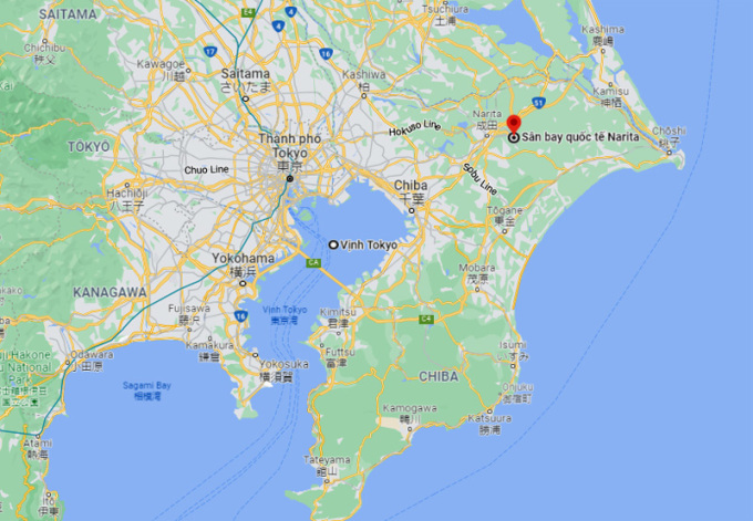Vị trí sân bay Narita và vịnh Tokyo. Ảnh: Gmap